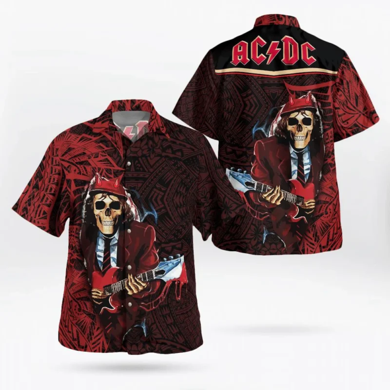 Elevate your wardrobe with the AC/DC Skeleton Rocker Hawaiian Shirt, a must-have for every rock music enthusiast. This unique piece combines the timeless charm of Hawaiian shirts with the edgy spirit of AC/DC. Showcase your love for legendary rock music in a bold and stylish manner.