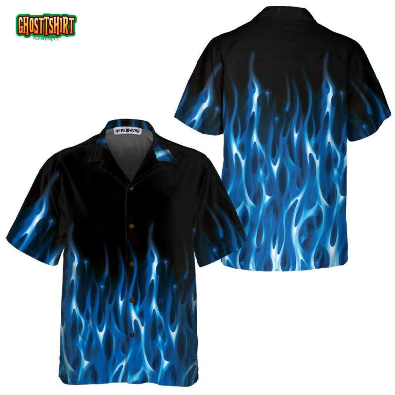 Embrace Vibrant Style with the Blue Flame Hawaiian Shirt