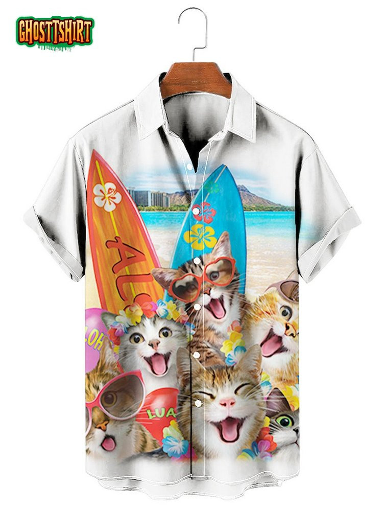 Embrace the spirit of summer with the Cats On The Beach Print Summer Men’s Aloha Shirt. This vibrant shirt features playful cat illustrations frolicking on a beach, capturing a fun and relaxed vibe. It’s the perfect conversation starter for any casual outing.