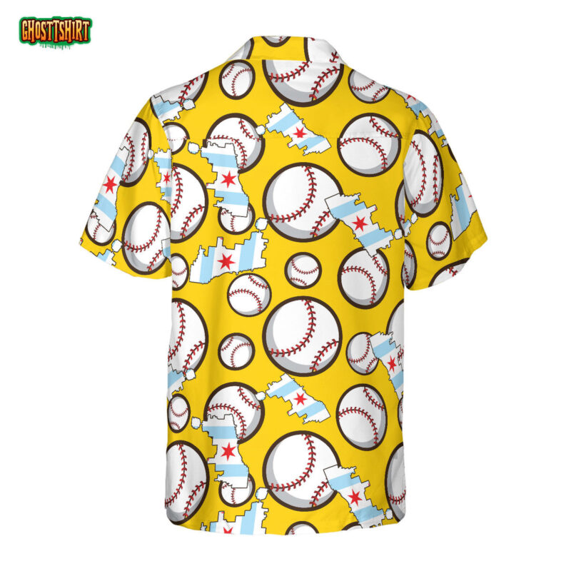 Featuring a bold design that merges the Chicago city flag with classic baseball themes, this shirt is sure to turn heads. The bright colors and detailed patterns make it a standout piece. Wear it to express your passion for Chicago and baseball, all in one fashionable garment.