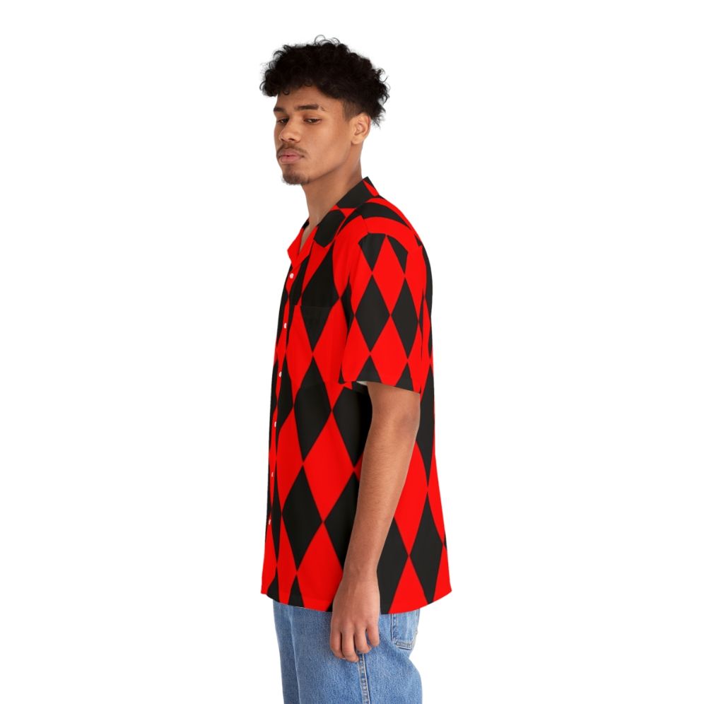 Unleash Your Bold Style with the Classic Red and Black Harlequin Hawaiian Shirt