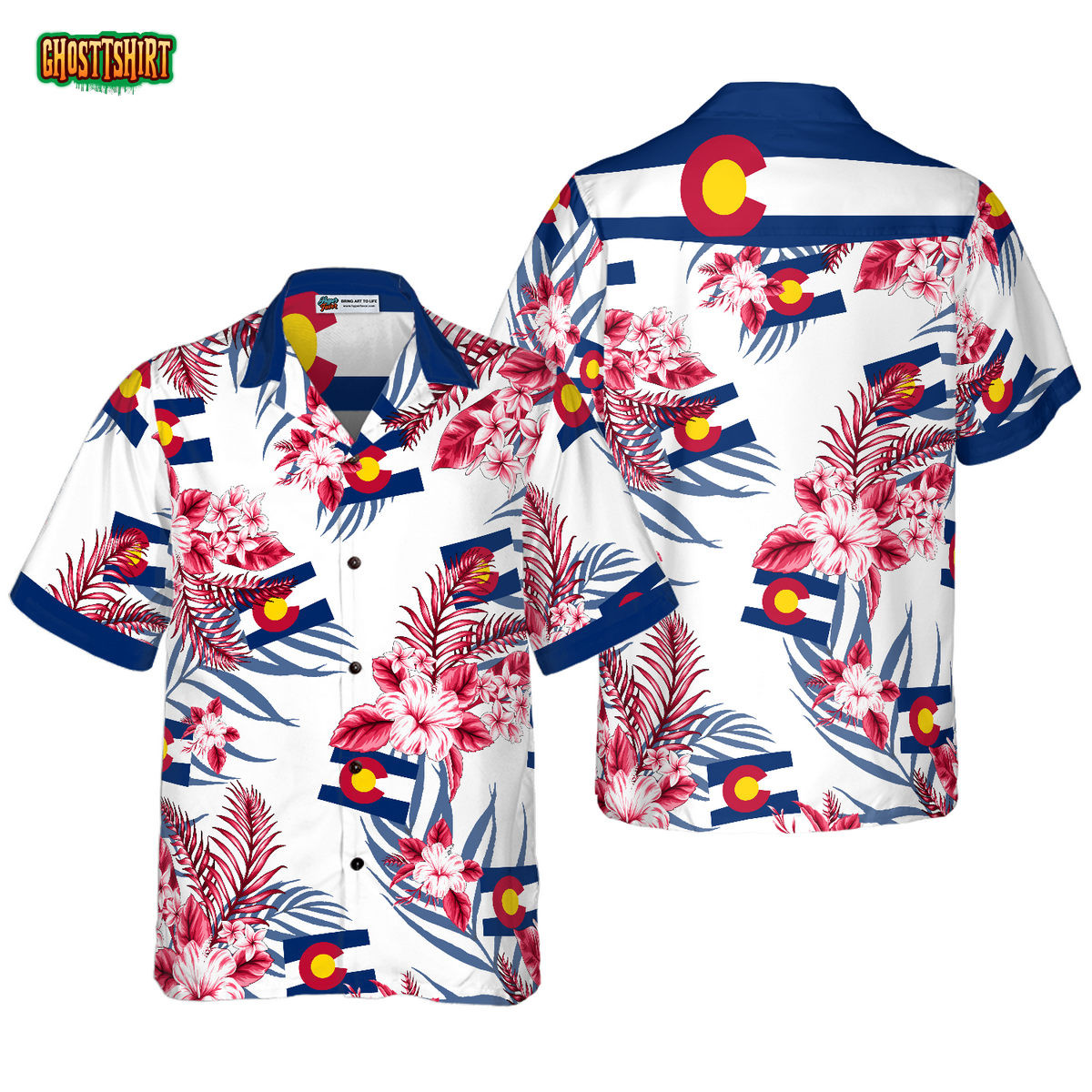Featuring vibrant colors and eye-catching patterns, this Hawaiian shirt showcases Colorado symbols with a tropical flair. The detailed design includes nods to the state’s natural beauty, ensuring you carry a piece of Colorado wherever you go. Each shirt is a work of art, making it a must-have for every wardrobe.