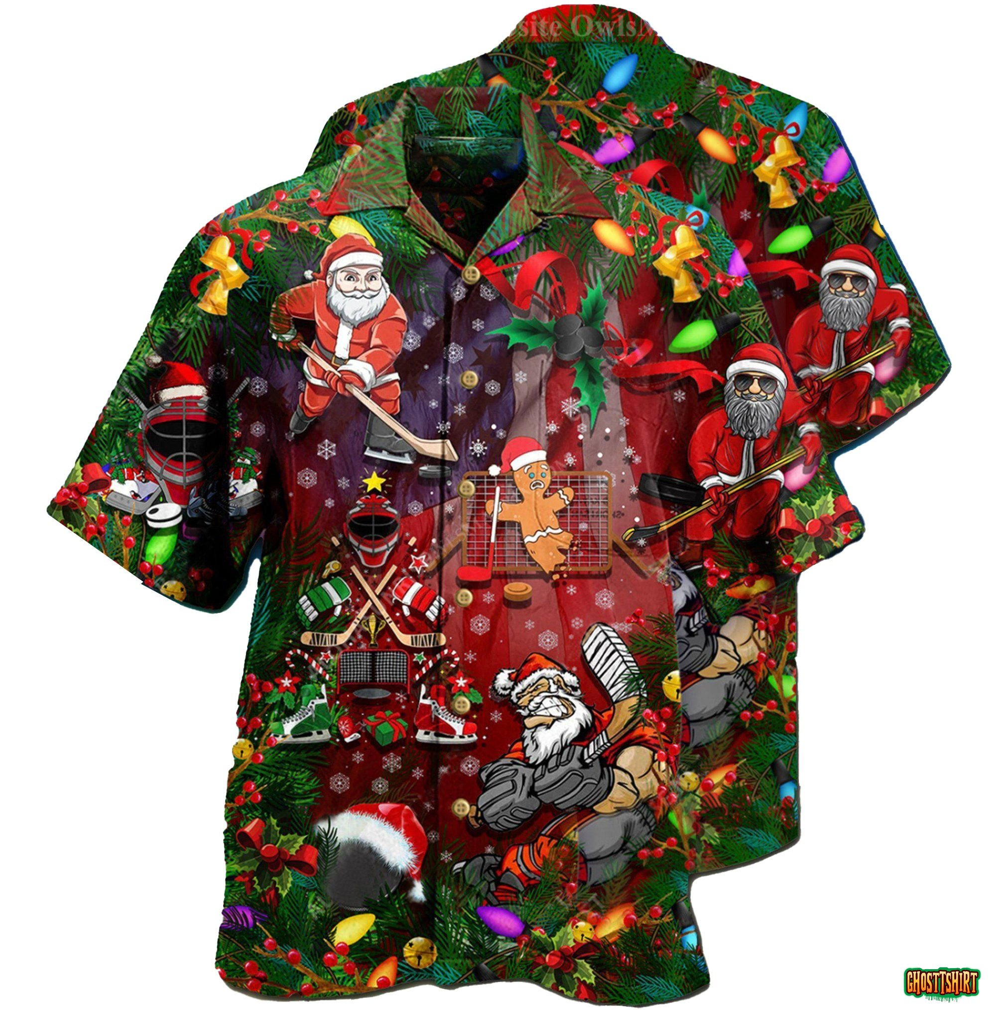 Make this Christmas unforgettable with our unique “Come On Play Hockey With Santa Claus And Reindeer Christmas Hawaiian Shirt.” Order now and bring joy to your holiday wardrobe!