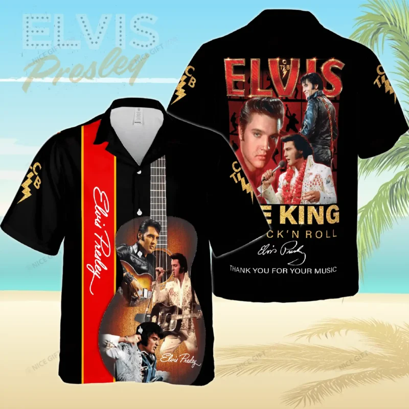 Showcase your admiration for Elvis Presley with this signature Hawaiian shirt. It’s an ideal choice for themed parties, concerts, or casual outings. This shirt is more than just apparel; it’s a piece of rock and roll history.