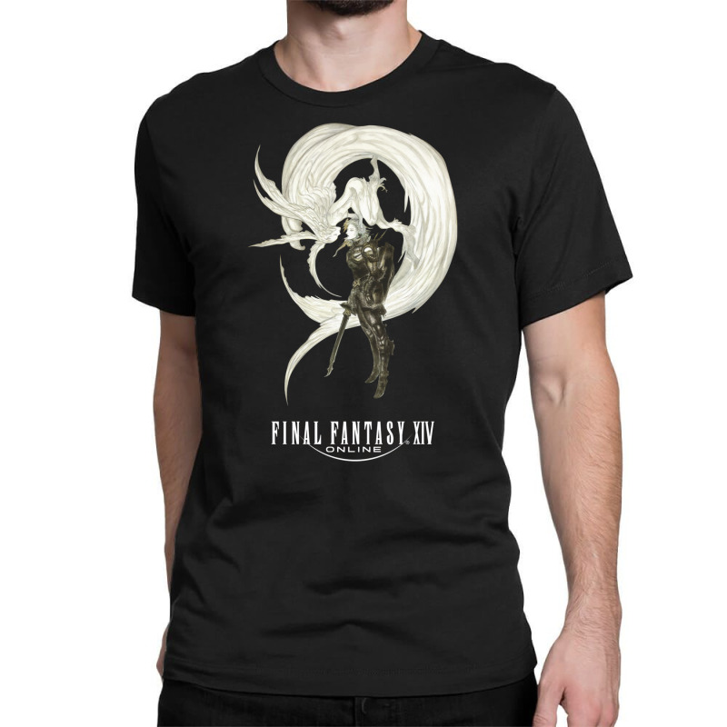Experience the beloved world of Final Fantasy XIV with this classic T-shirt featuring exclusive artwork by renowned artist Yoshitaka Amano. Known for his ethereal and iconic designs, Amano brings a unique touch to the beloved franchise through this striking T-shirt. Each illustration captures the fantasy essence and intricate details that fans adore.
