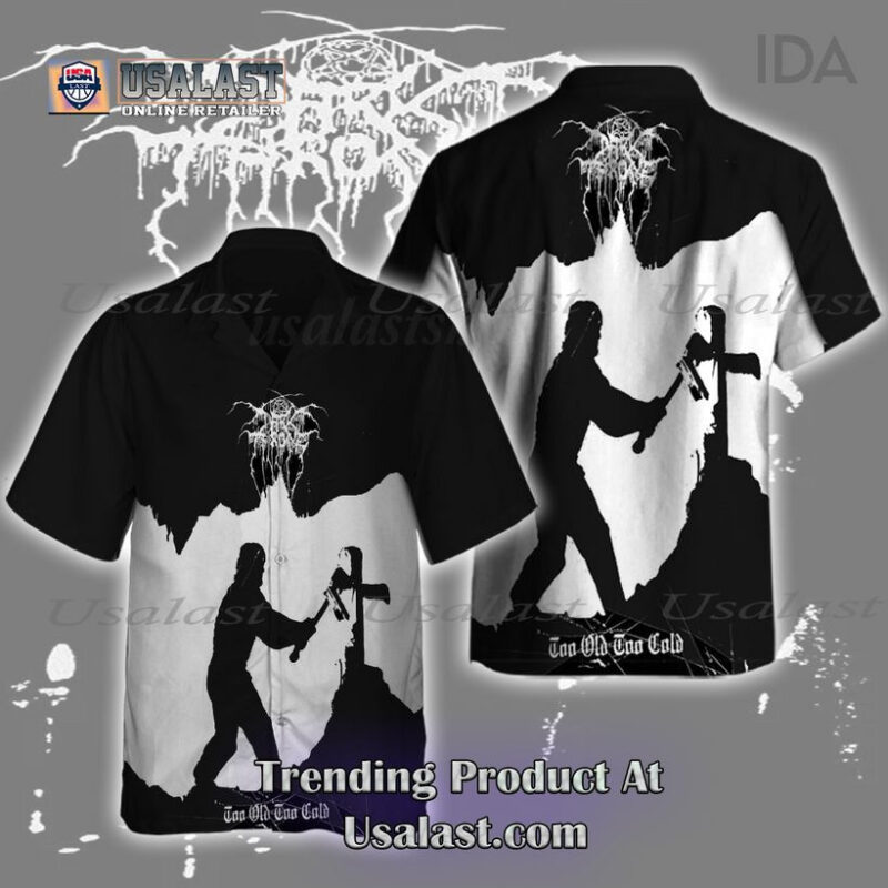 Elevate your casual wardrobe with the HOT Darkthrone Too Old Too Cold Hawaiian Shirt. This unique piece blends iconic metal style with the relaxed vibes of a Hawaiian shirt. Stand out at any gathering with its eye-catching design that pays homage to Darkthrone.