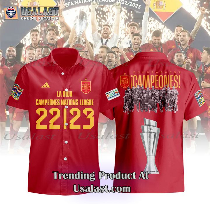 The HOT La Roja Campeones UEFA Nations League 2023 Hawaiian Shirt is more than just a piece of clothing. It’s a tribute to Spain’s epic victory in the UEFA Nations League 2023. Wear this shirt and join the celebration with pride and style.