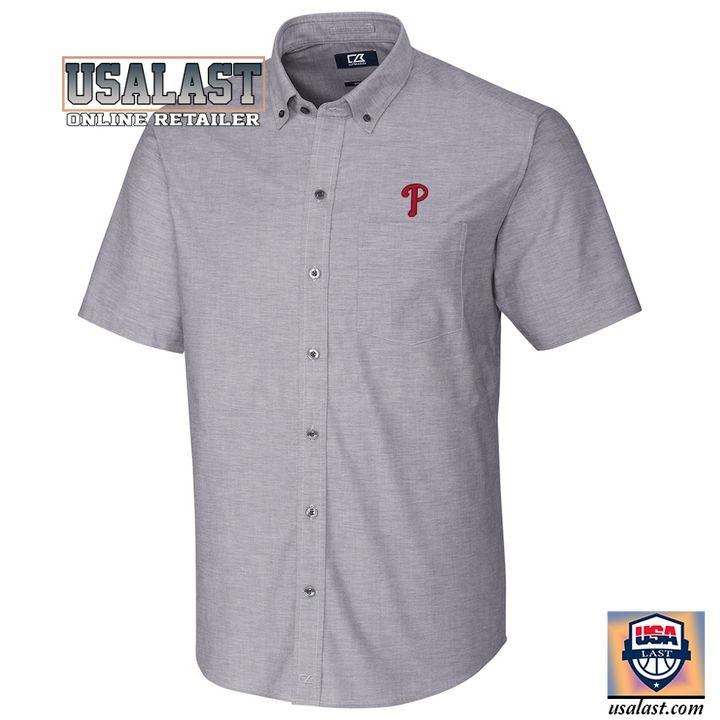 Embrace your team spirit with the HOT Philadelphia Phillies Charcoal Stretch Oxford Hawaiian Shirt. This trendy shirt features the iconic Phillies logo, set against a classic charcoal backdrop. Perfect for game day or casual outings, it showcases your loyalty in style.