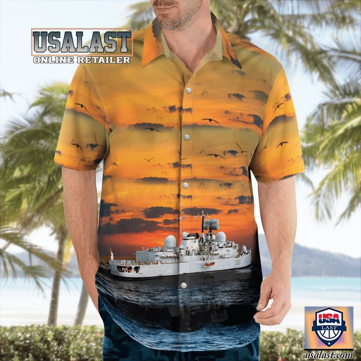 Step into the world of naval history with the HOT Royal Navy Type 42 Destroyer HMS Sheffield Aloha Hawaiian Shirt. This unique shirt blends the iconic silhouette of the HMS Sheffield with classic Hawaiian motifs. Perfect for history enthusiasts, it adds a touch of maritime charm to your wardrobe.