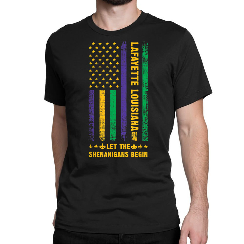 Experience the vibrant spirit of Mardi Gras with the Lafayette Louisiana Fleur de Lis American Flag T-shirt. This classic tee seamlessly combines iconic symbols, making it perfect for celebrating the festivities in style. Whether you’re attending a parade or hosting a party, this shirt will ensure you stand out.