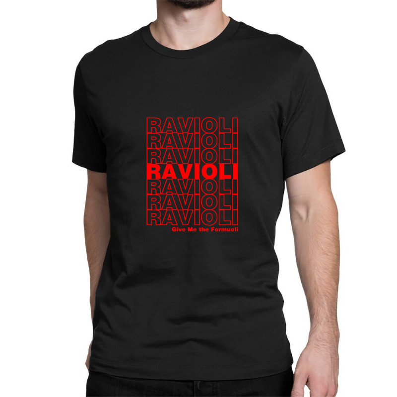 No matter your size, the “Ravioli Ravioli Give Me the Formuoli” Classic T-shirt has you covered. Available in a range of sizes from small to XXL, it’s designed to fit comfortably on any body type. Enjoy the perfect blend of style and humor with a t-shirt that reflects your playful side.