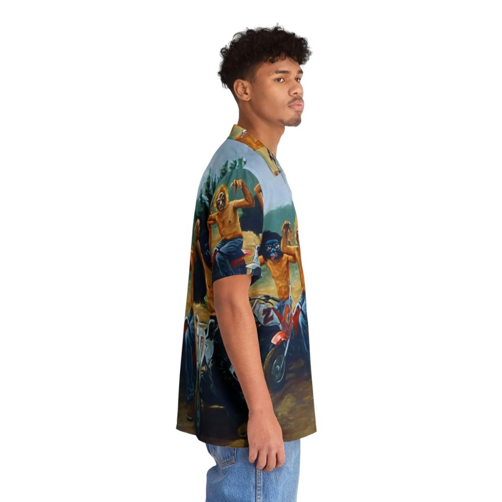 Crafted from high-quality, breathable fabric, this Hawaiian shirt offers both style and comfort. Its vivid print pays homage to the iconic patterns and motifs reminiscent of the quirky characters in The Royal Tenenbaums. The classic Hawaiian shirt cut ensures a relaxed fit, perfect for casual outings, beach days, or themed movie nights.
