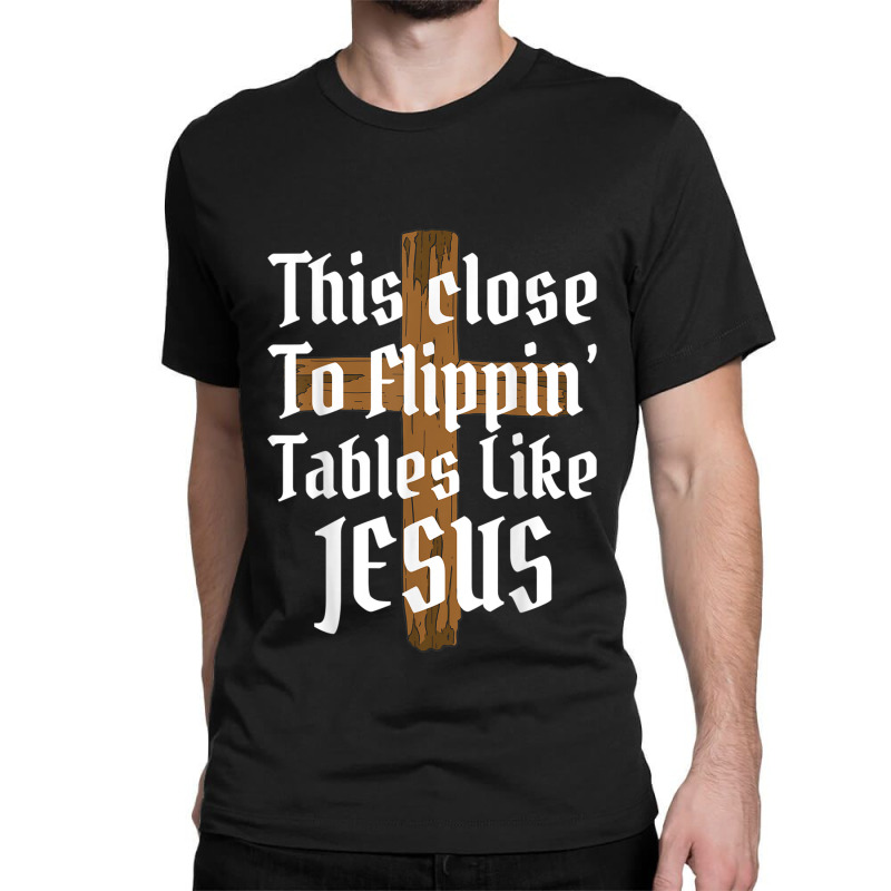 Unveil Your Bold Side with the “This Close to Flipping Tables Like Jesus” T-Shirt