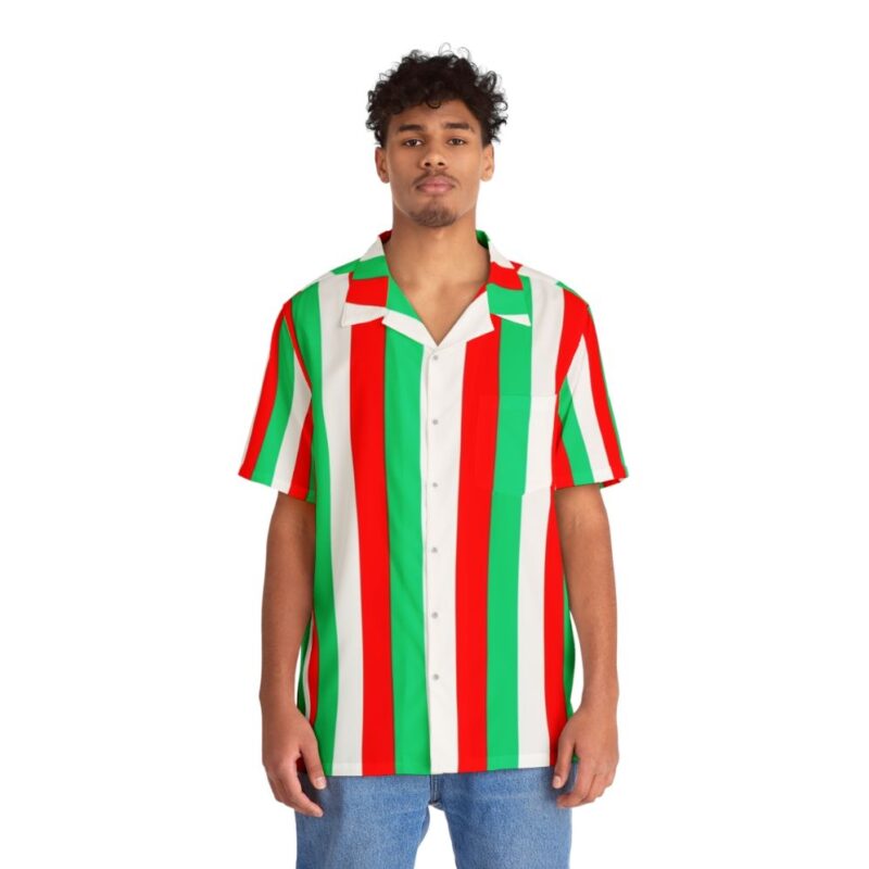 Stand Out with the Vibrant Red, Green & White Stripes Hawaiian Shirt