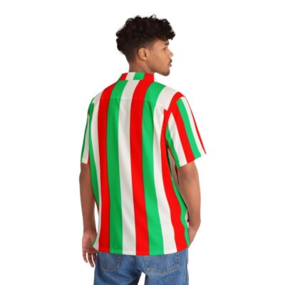 Whether you’re attending a beach party, a backyard BBQ, or just enjoying a day out, this shirt is your go-to option. The vibrant red, green, and white stripes add a touch of flair that’s sure to turn heads. Pair it with shorts for a laid-back look or dress it up with slacks for a more polished ensemble.